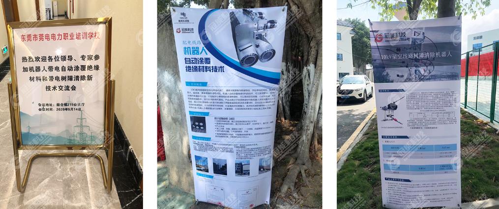 2020年5月14日,廣東冠能電力科技發展有限公司自主研發的帶電作業智能裝備亮相于廣東電網東莞供電局召開的機器人帶電自動涂覆絕緣材料和帶電樹障清除新技術交流會現場。