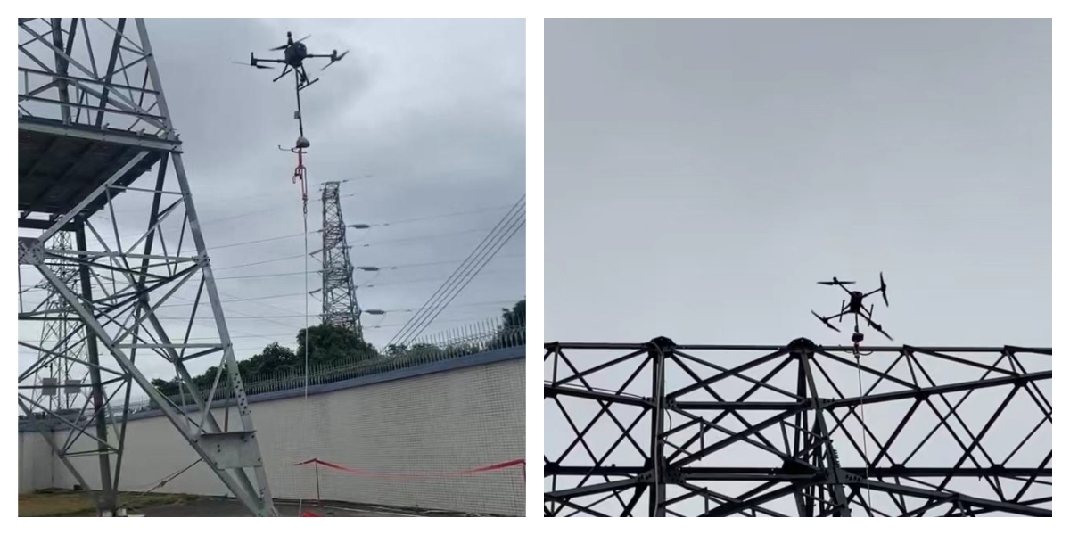現(xiàn)場(chǎng)作業(yè)人員在給專家們講解新型登塔防墜裝置,該裝置無需登塔預(yù)安裝,無需停電加裝,不改變作業(yè)人員登塔習(xí)慣的情況下,通過無人機(jī)實(shí)現(xiàn)裝置的快速安裝與拆除,可有效保障首位登塔人員的安全,登塔全過程保護(hù),廣泛用于輸電線路登塔作業(yè)人員高空墜落防護(hù)。