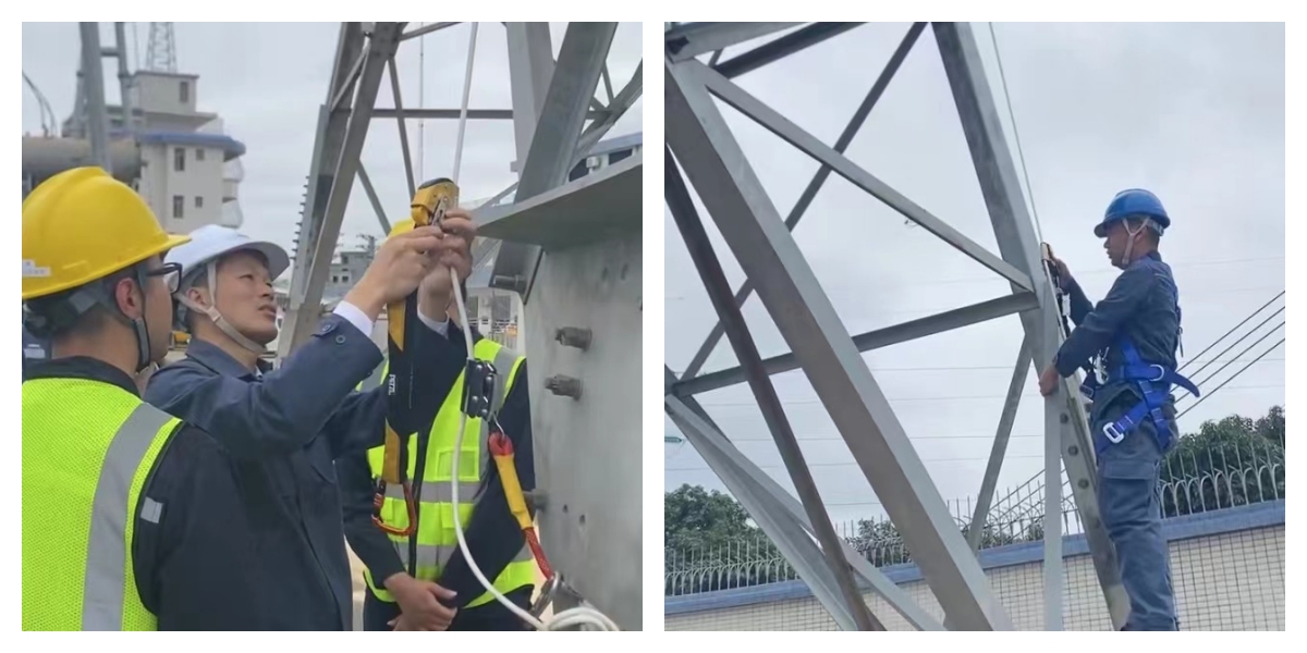 現(xiàn)場(chǎng)作業(yè)人員登塔演示,檢驗(yàn)產(chǎn)品安全性.